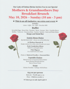 Tickets will be available for purchase very soon, so mark your calendars and don’t miss out! Come join us for this beautiful, joyful event at the Fatima Shrine on May 10, 2026, from 10:00 AM to 3:00 PM. We can’t wait to celebrate the special mothers and grandmothers in your life with you! 🌹